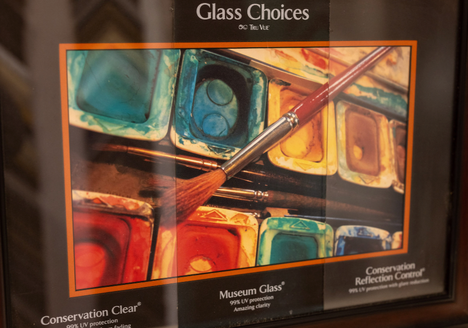 Protect your art with glazing options from standard reflective glass to museum-grade, non-reflective, conservation-quality glass and plexiglass.